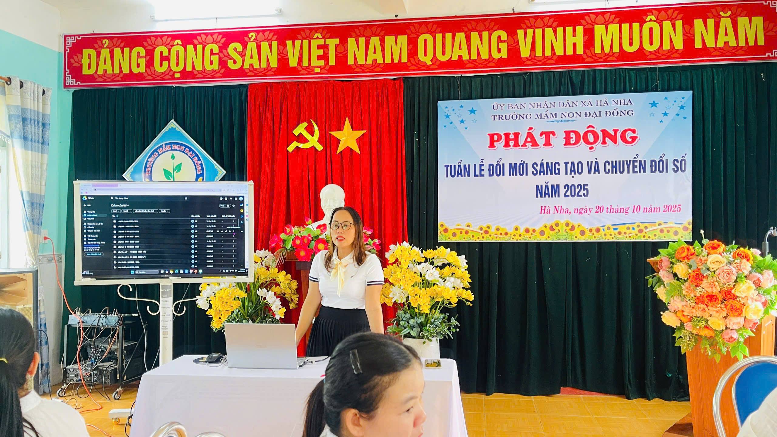 Thực hiện Kế hoạch số 73/KH-UBND ngày 03/10/2025 của UBND xã Hà Nha về việc triển khai các hoạt động hưởng ứng Ngày hội Đổi mới sáng tạo quốc gia 01/10 và Ngày Chuyển đổi số quốc gia năm 2025, chiều ngày 20/10/2025, Trường Mầm non Đại Đồng tổ chức phát động Tuần lễ Đổi mới sáng tạo và Chuyển đổi số năm 2025.